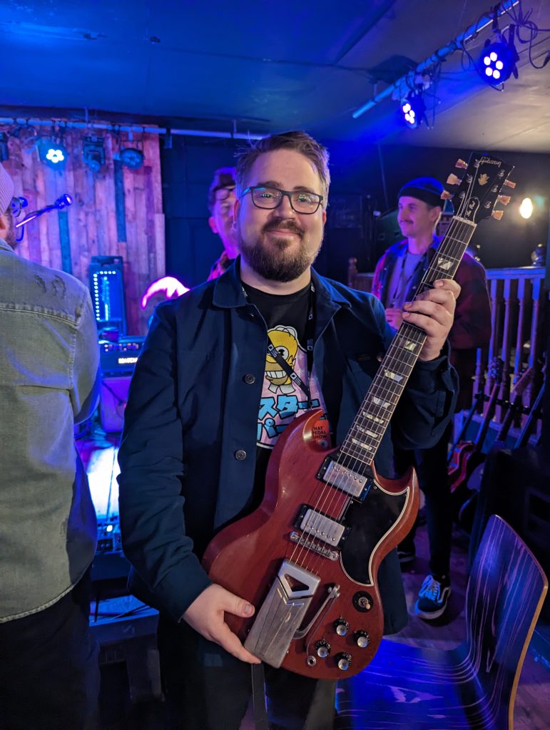 Here’s a pic of me with Dan Steinhardt’s 1962 Gibson Les Paul – the original name for this shape before it became known as an SG.