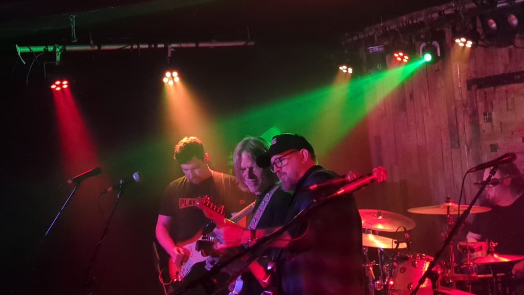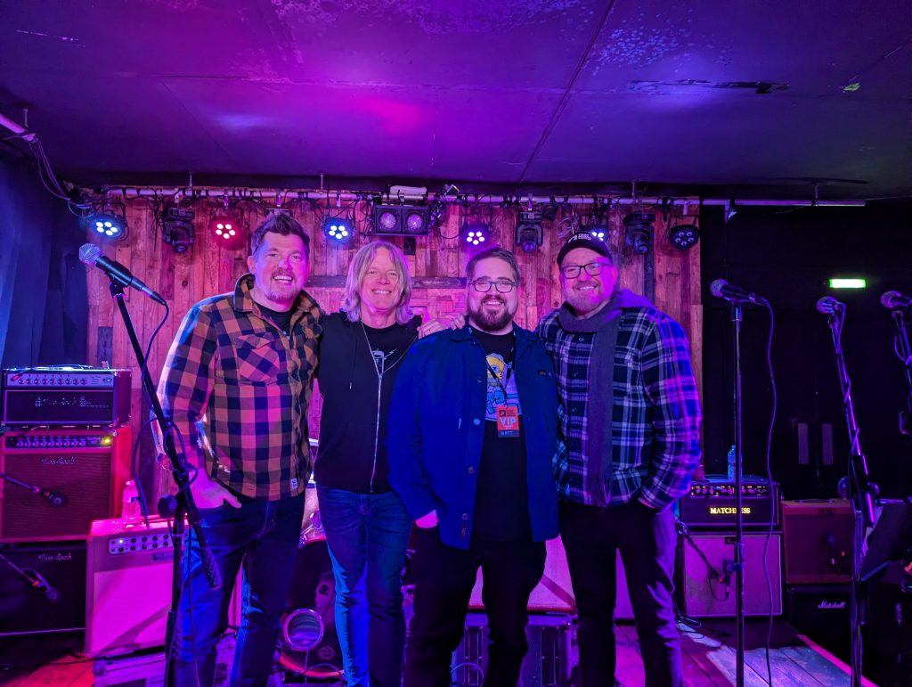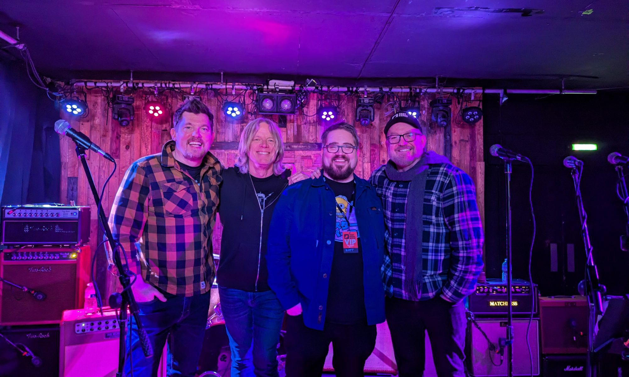 Sadly, I didn’t manage to get pictures of me playing Dan’s famous and beloved Fender Telecaster,”Red”. I did however manage to get this great photo of the four of us on stage.